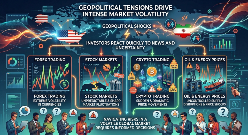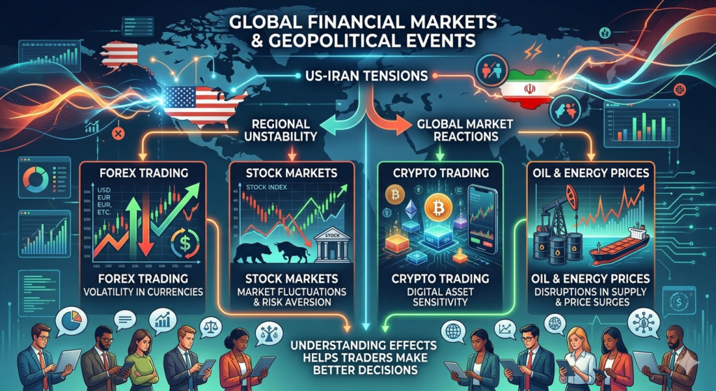 Global financial markets are highly sensitive to geopolitical events. When tensions rise between major nations such as the United States and Iran, the effects are not limited to politics—they also influence global economies and digital financial activities.